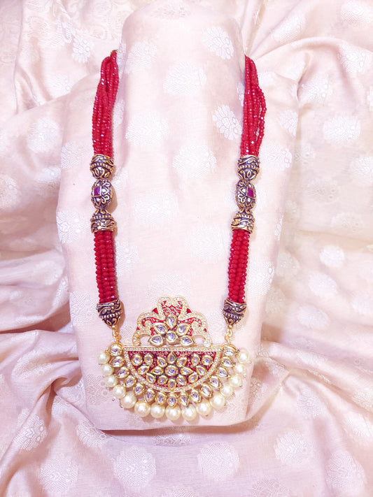 Onyx Beaded Meenakari Long Pendant Necklace Set