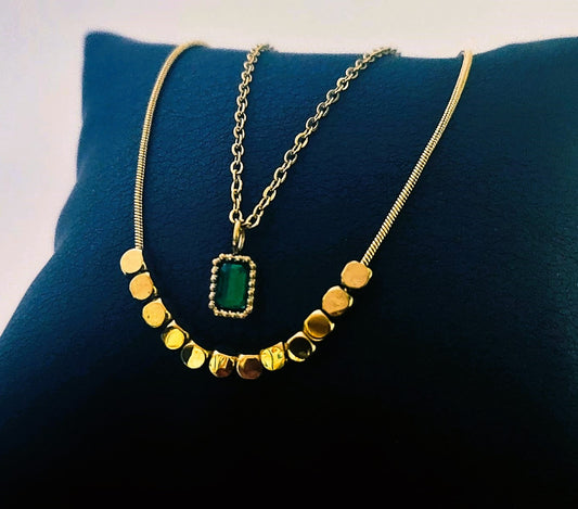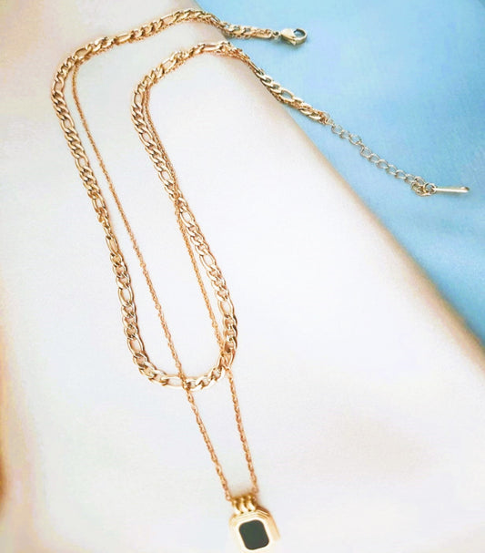 Stainless Steel 18K Gold Plated Onyx Pendant Layered Necklace