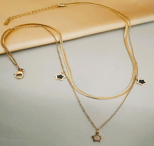 Stainless Steel 18K Gold Plated Starry Layered Necklace
