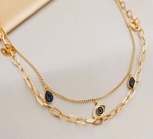 Stainless Steel 18K Gold Plated Evil Eye Layered Necklace