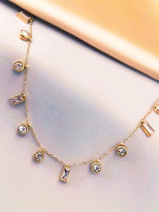 Stainless Steel 18K Gold Plated Diamante Charm Necklace