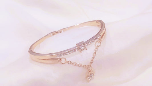 Stainless Steel 18K Gold Plated Diamante Bangle Bracelet