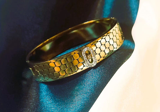 Stainless Steel 18K Gold Plated Honeycomb Bangle Bracelet