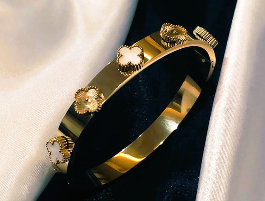 Stainless Steel 18K Gold Plated Clover Bangle Bracelet