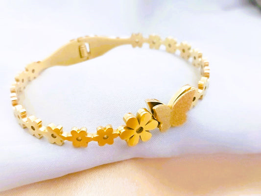 Stainless Steel 18K Gold Plated Butterfly Bangle Bracelet