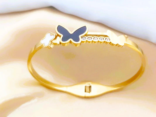 Stainless Steel 18K Gold Plated Black Butterfly Bangle Bracelet