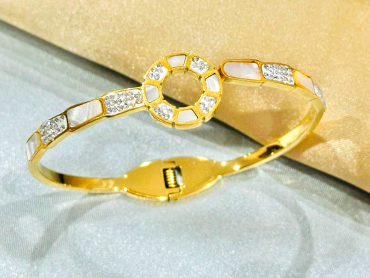 Stainless Steel 18K Gold Plated Diamante Studded Bangle Bracelet