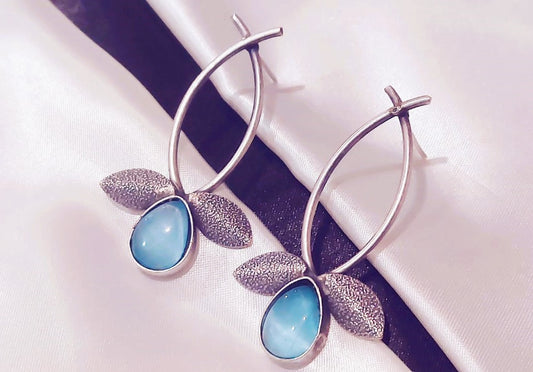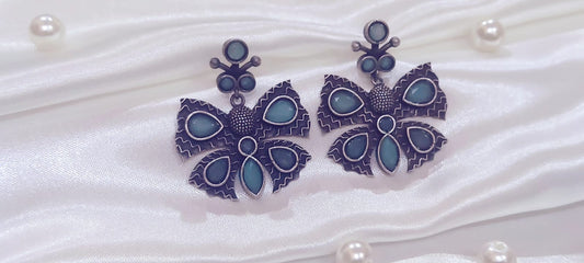 Oxidized German Silver Aqua Blue Butterfly Earrings