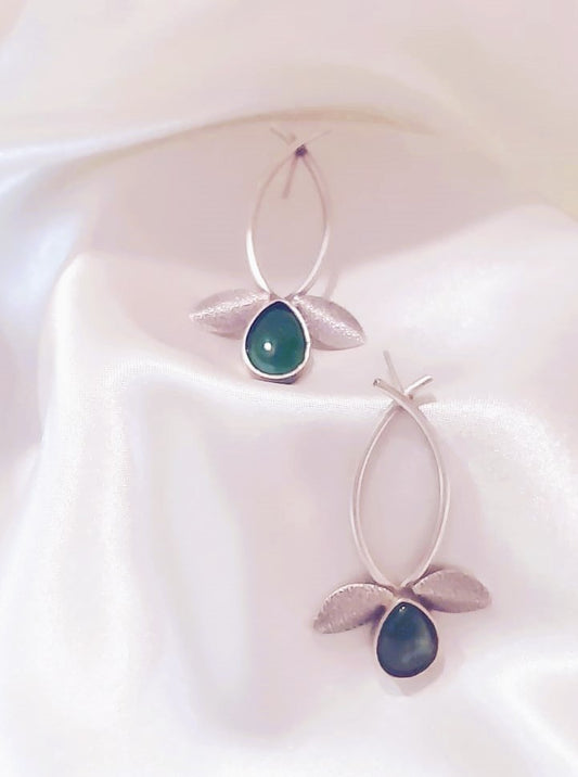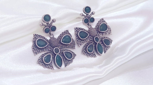 Oxidized German Silver Emerald Green Butterfly Earrings