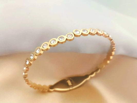Stainless Steel 18K Gold Plated Diamante Studded Bangle Bracelet